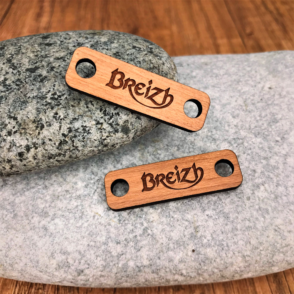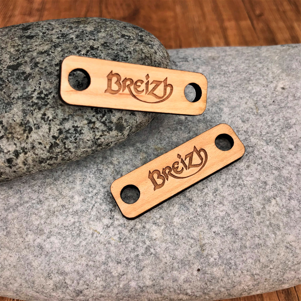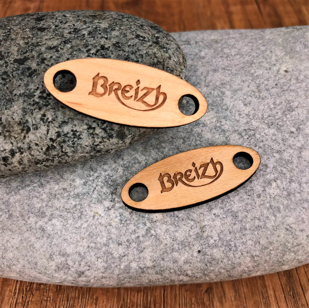 Une petite plaque personnalisée ou personnalisable en bois érable ou cerisier, selon vos envies. Il est très facile de les installer, il suffit pour cela de faire passer vos lacets par les trous.