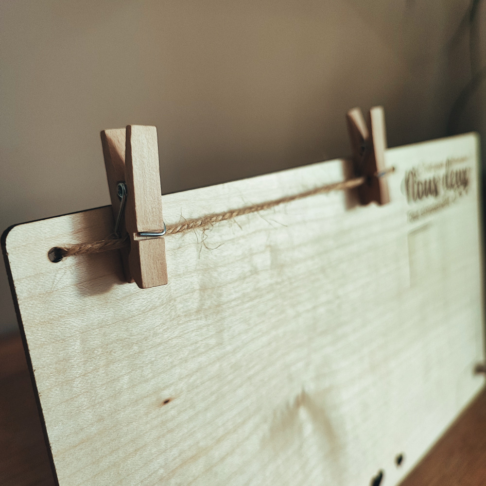 - Fixation de la photo par ficelle naturelle et 2 épingles bois