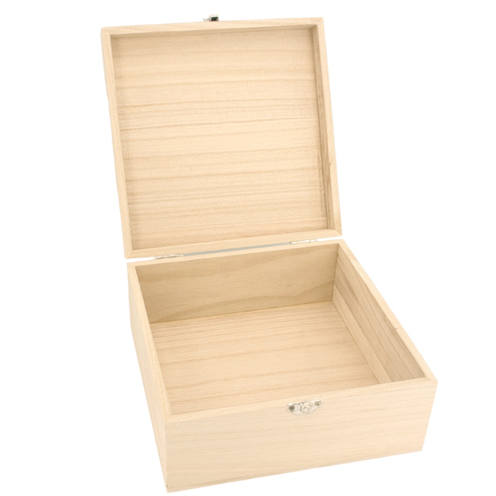 - Boîte en bois de paulownia brut 20 x 20 x 9 cm