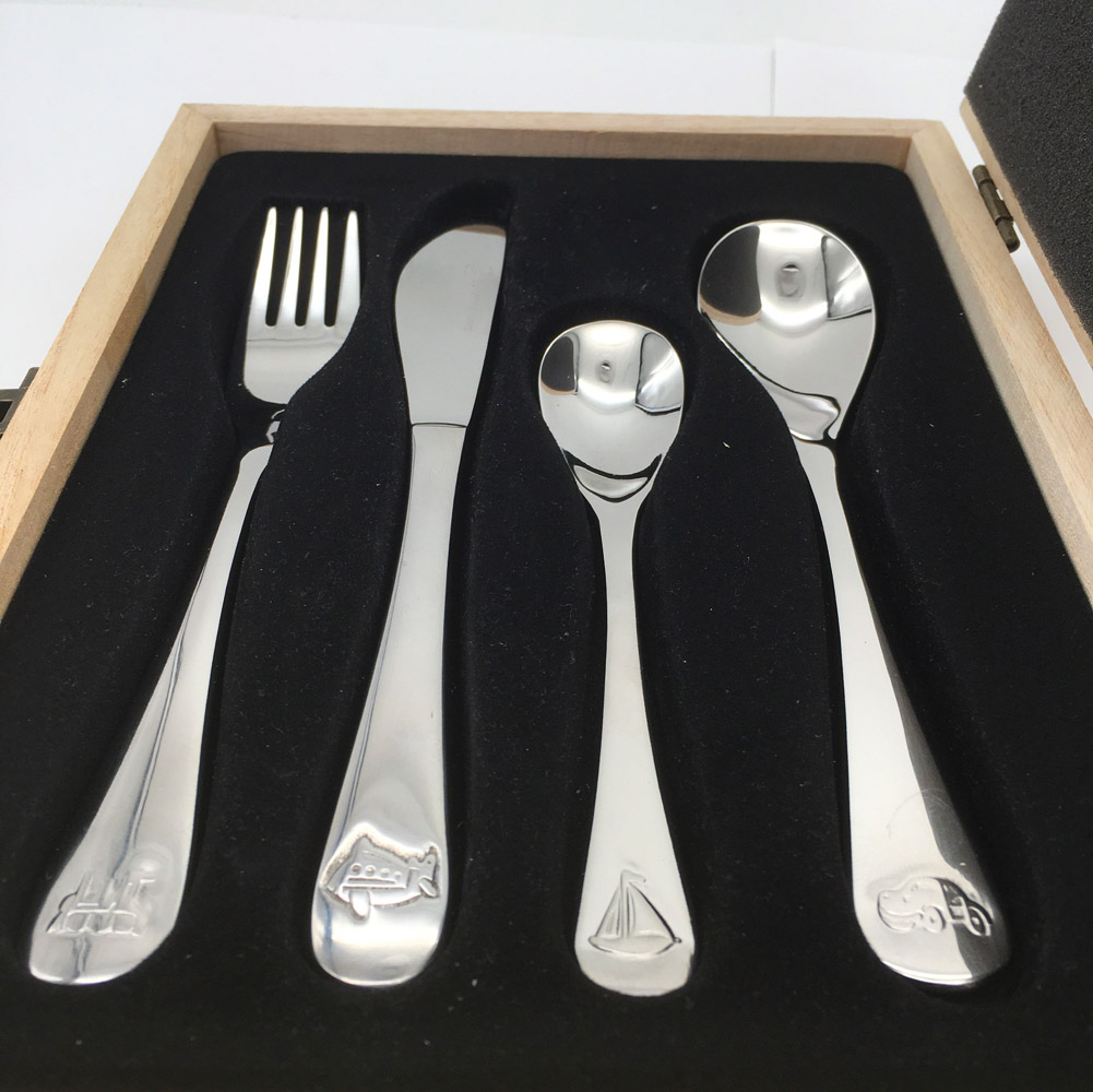 Il comprend 4 petits couverts dont chaque manche est agrémenté de petits dessins ludiques en relief. Ils bénéficient d’une finition polie miroir élégante sur les 4 pièces. En inox, les couverts peuvent tout à fait passer au lave-vaisselle.