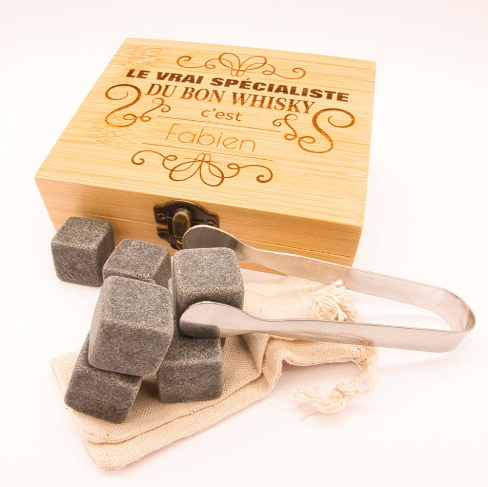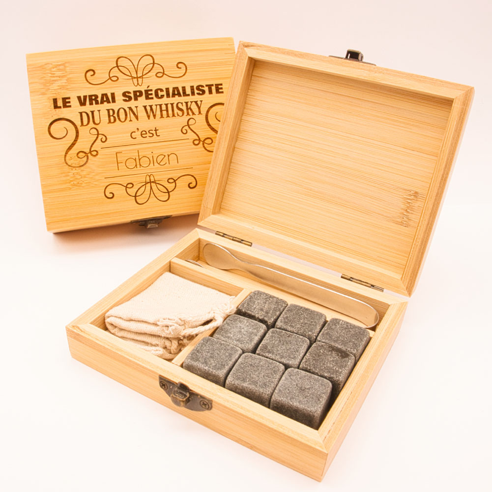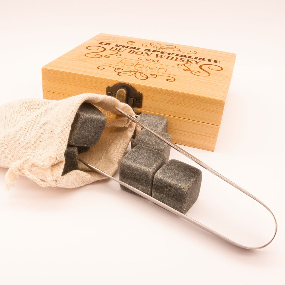 Avec une jolie personnalisation, notre Coffret pierres à whisky personnalisé fera le bonheur de tous les amateurs de whisky !