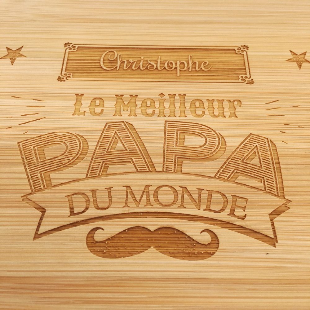 Notre Coffret sommelier bois Meilleur Papa est un très joli cadeau pour votre papa. Une bonne idée pour la fête des pères ! Pour les amateurs de vin, ce coffret est à personnaliser avec le prénom ou le surnom du papa.