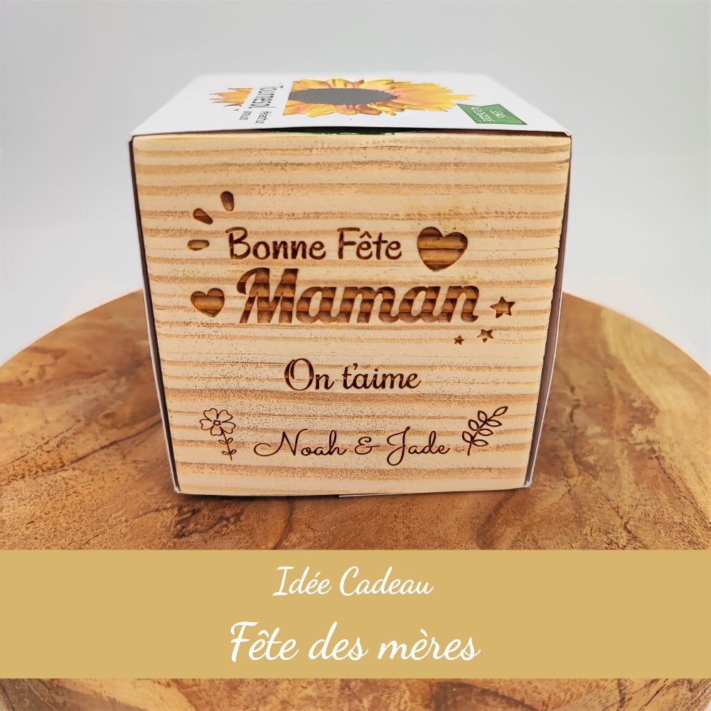 Super idée cadeau ! Un cube en bois à personnaliser avec des graines à faire pousser ! Pour la fête des mamans, les cadeaux maîtres/maîtresses, nounous ou même pour un anniversaire…