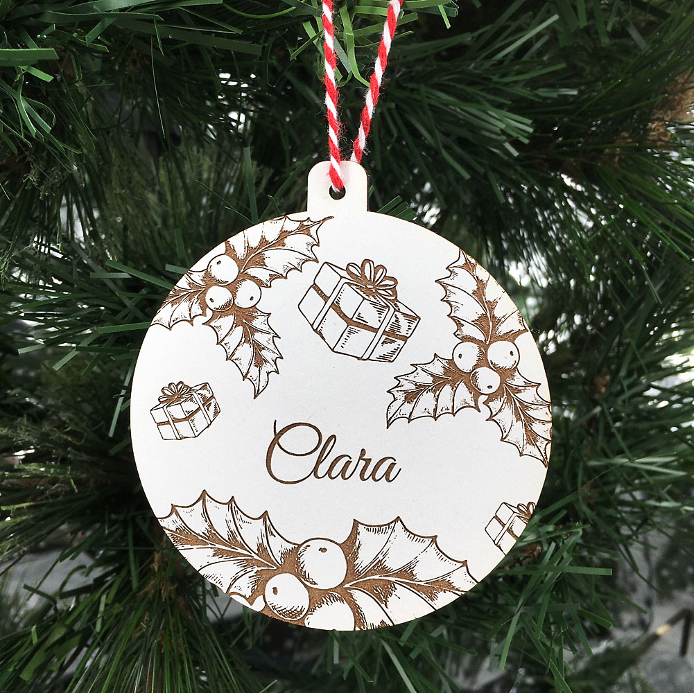 Décorez votre sapin avec la Déco de noël Cadeaux réalisée en bois de peuplier ou de médium blanc de 3mm. Accrochez dans votre sapin votre décoration personnalisée au prénom de votre enfant ou au vôtre. Les graphismes de ces décorations vous plongeront dans l’esprit de noël et donneront un côté « vintage » à votre sapin.