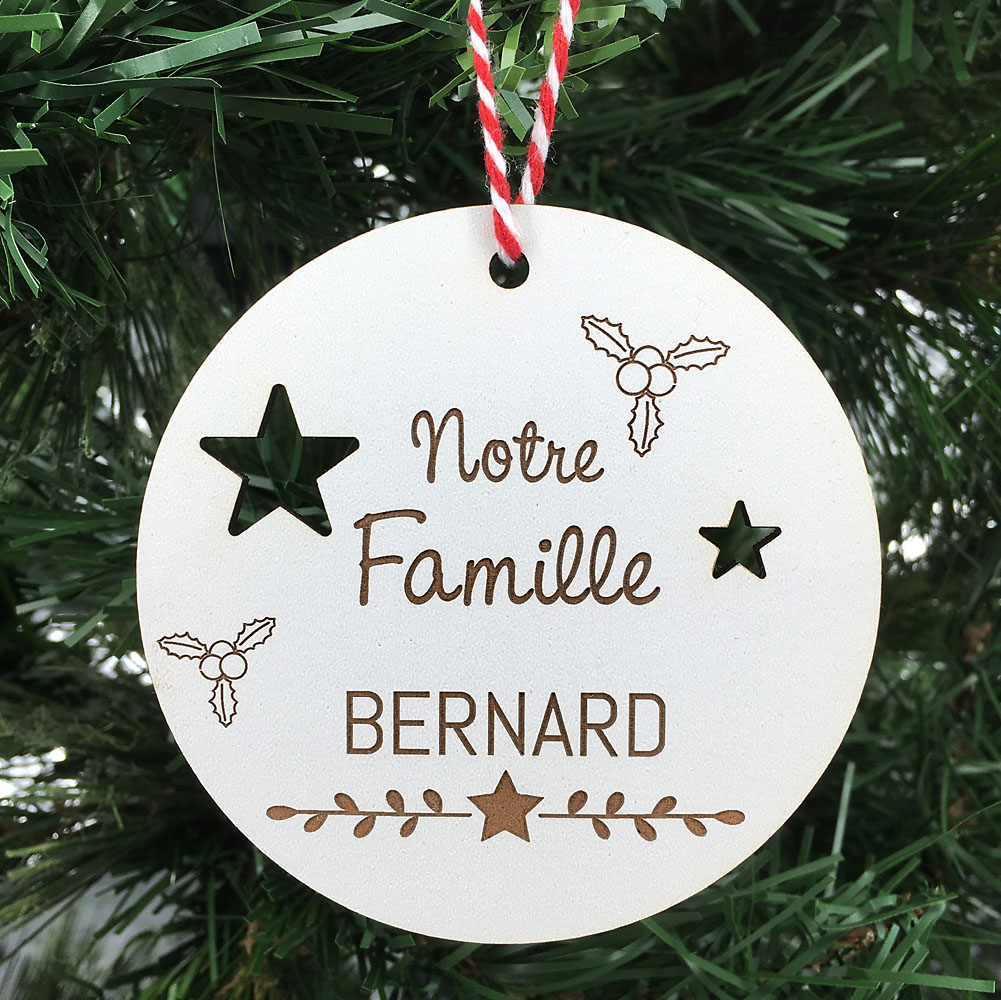 Décorez votre sapin avec la Déco de noël Famille réalisée en bois de peuplier ou de médium blanc de 3mm. C’est l’occasion de réunir une même famille dans le sapin, même si tous ne sont pas présents. Vous pouvez l’offrir aux membres de votre famille ou de vos amis. Un moyen original de décorer son sapin et de se sentir tous réunis…