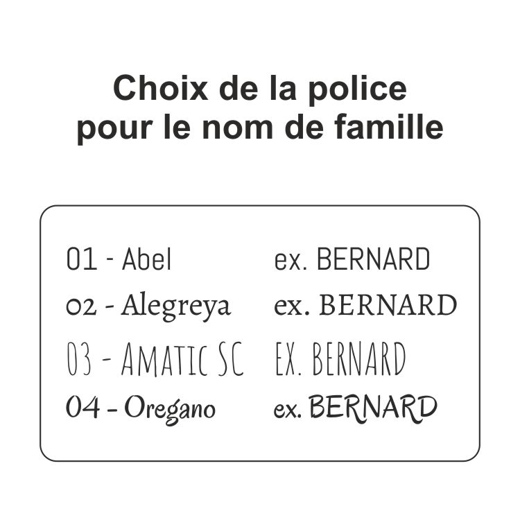 N’oubliez pas de saisir le nom de votre famille avant d’ajouter au panier !