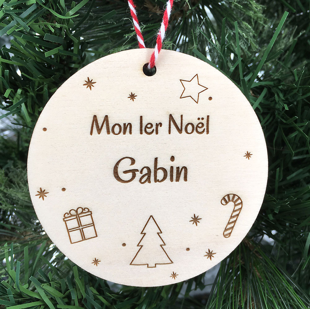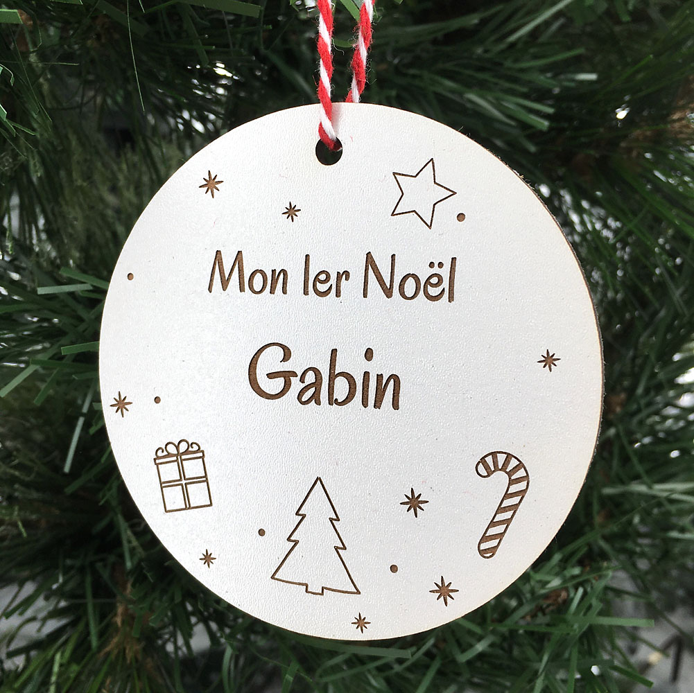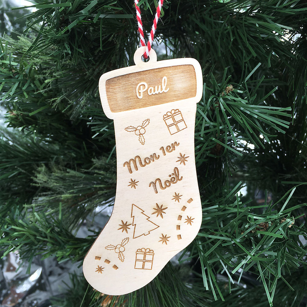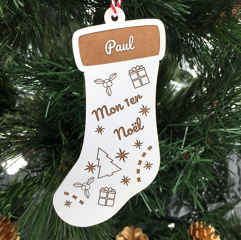 Décorez votre sapin avec la Déco du 1er noël réalisée en bois de peuplier ou de médium blanc de 3mm. Quel bonheur d’accrocher la toute première décoration de noël de votre enfant. Il aura sans doute besoin d’une aide de votre part pour la fixer correctement dans le sapin. N’oubliez pas la photo souvenir de cet instant magique !