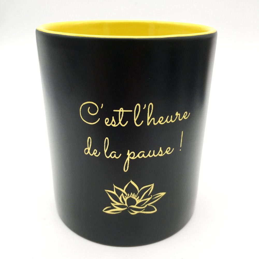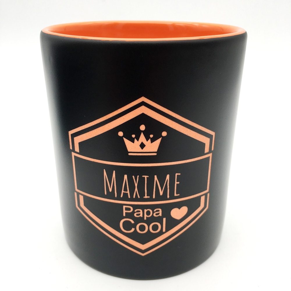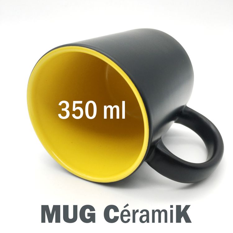 Le Mug CéramiK noir deviendra votre partenaire idéal pour vos moments de détente. Au petit déjeuner, à l’heure du thé ou pour la pause café, vous dégusterez votre boisson préférée dans ce superbe mug en céramique à personnaliser. Avec sa contenance de 350 ml, Le Mug CéramiK noir à tout d’un grand ! La spécificité de notre mug, c’est la couleur de gravure identique à la couleur intérieure du mug.