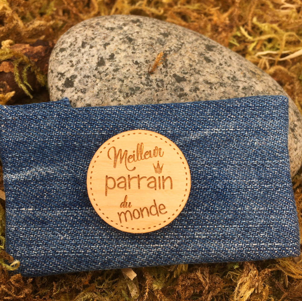 De toute évidence, il ne vous quittera plus, Le Pin’s bois meilleur parrain, dès lors que vous allez l’épingler sur votre vêtement avec de surcroît le plus beau des messages. Ce pin’s bois est un petit bijou parfait pour arborer fièrement et dans un matériau noble qui vous êtes vraiment, autrement dit : le bijou à la mode qu’il vous faut ! Nous réalisons nos pin’s bois personnalisés dans du bois de contreplaqué vernis de 3mm. Nos pin’s bois personnalisés sont très résistants et la gravure laser est d’une incroyable finesse et précision. En règle générale, les pin’s bois résistent bien à l’eau, cependant nous vous conseillons tout de même de penser à les retirer du vêtement avant la grande lessive.
