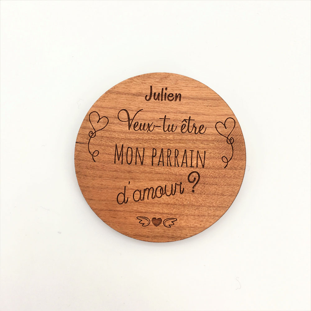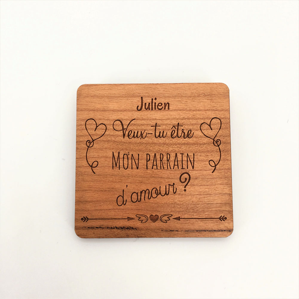 Notre magnet bois demande Parrain est vraiment une idée sympa pour faire votre demande au futur parrain de votre enfant.