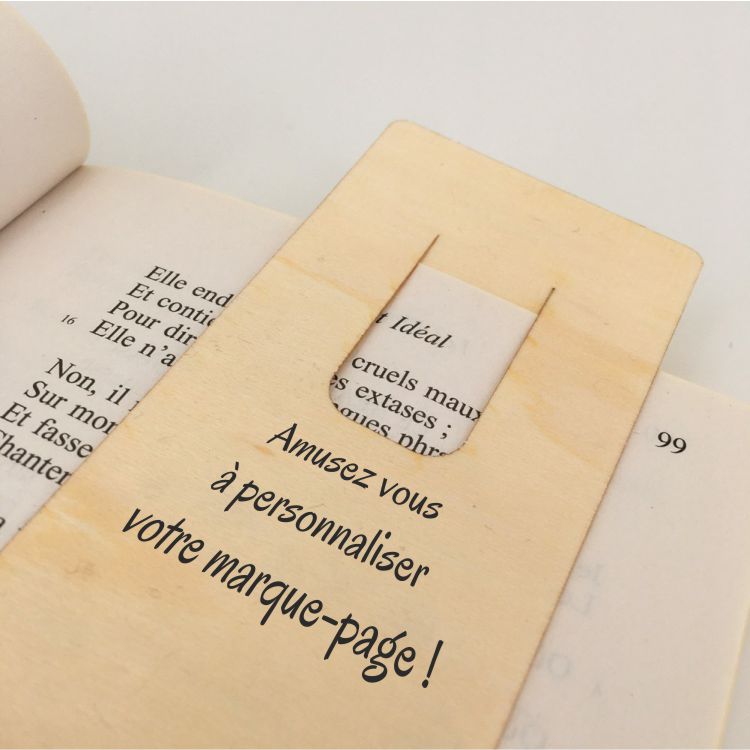 Pour information de mise en page, tout ce qui se trouve dans la languette ne sera pas visible quand le marque-page sera en utilisation dans un livre. Si vous aimez personnaliser, nous vous proposons également de découvrir nos porte-clés bois 100% personnalisables.