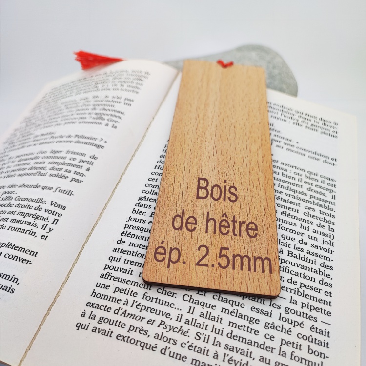 Nous réalisons nos marque-pages bois personnalisés dans du bois de contreplaqué en érable de 1 mm flexible.