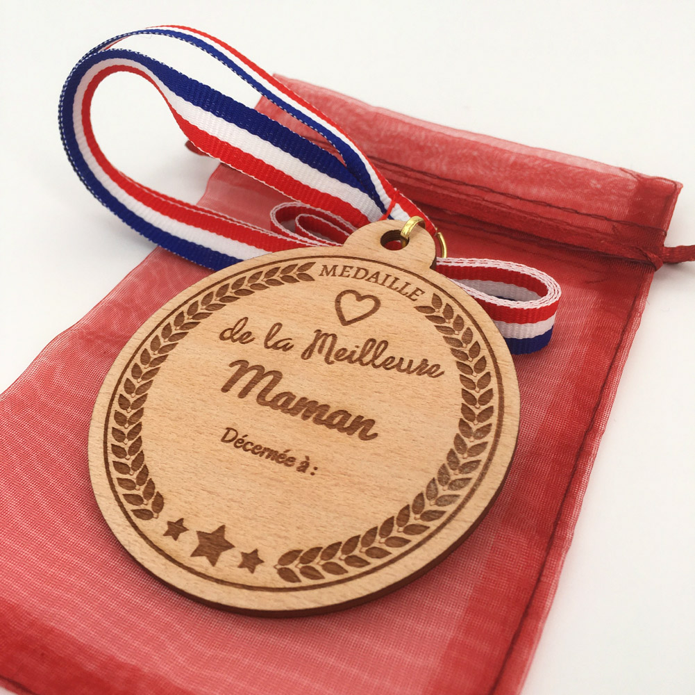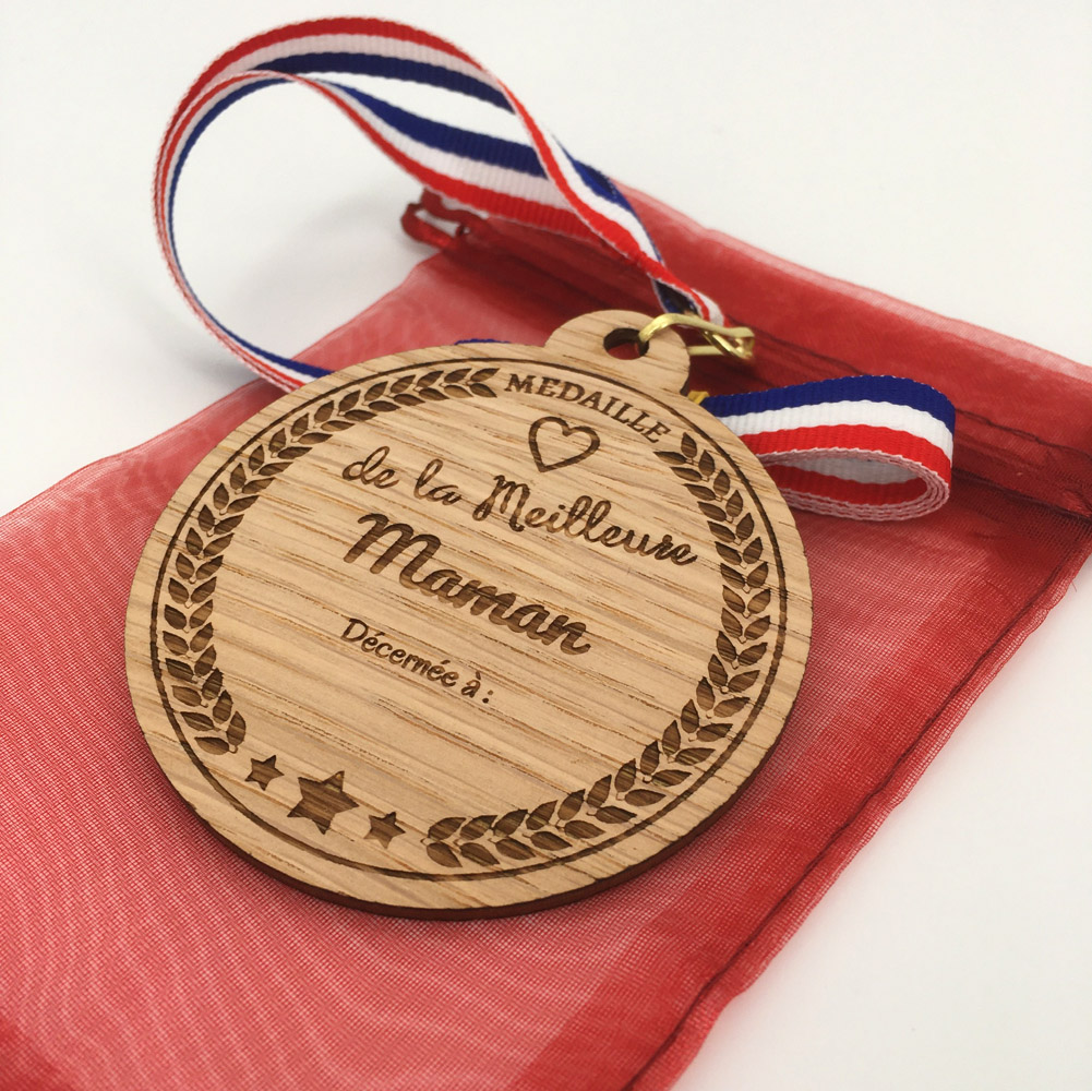 Vous savez bien qui mérite cette médaille bois meilleure maman ? Vous allez pouvoir lui dire, à votre mère, combien elle est importante pour vous et pourquoi elle mérite cette médaille ! Il n’est pas utile d’organiser une cérémonie officielle pour lui mettre cette médaille autour du cou, mais, une chose est sûre : cette récompense honorera votre maman. Il vous suffit pour cela de renseigner son prénom, son surnom au recto de la médaille bois.