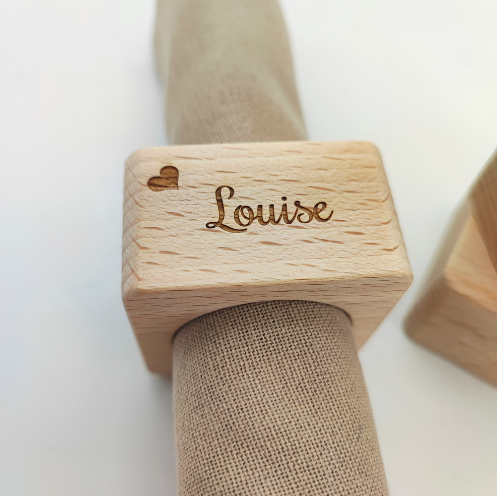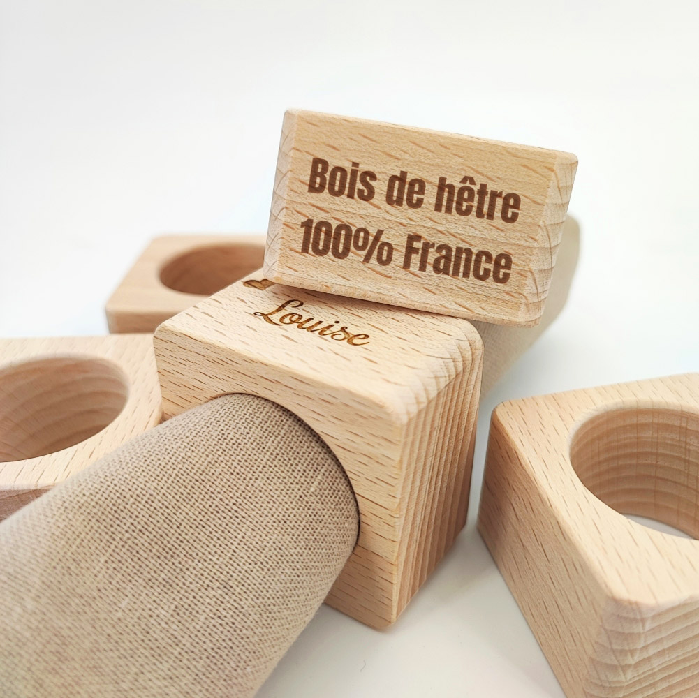 Notre Rond de serviette bois personnalisé est issu de l’atelier d’un artisan du Loir-et-Cher avec qui nous aimons collaborer car son travail est toujours d’une très grande qualité ainsi que le bois qu’il utilise (hêtre de Bourgogne-Franche-Comté).  Votre personnalisation par la gravure laser en fera un cadeau touchant que vous pourrez offrir en de multiples occasions. Cadeaux pour un mariage, fête des grands-mères ou des grands-pères, pendaison de crémaillère, anniversaire ou Noël ! Un cadeau personnalisé fait toujours plaisir ! Vous aurez forcément un coup de cœur avec notre produit que vous pourrez personnaliser pour en faire le cadeau unique.