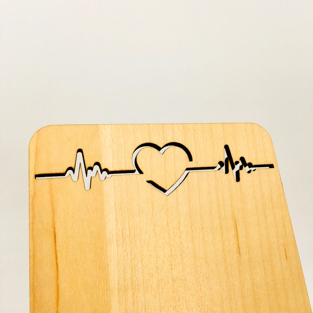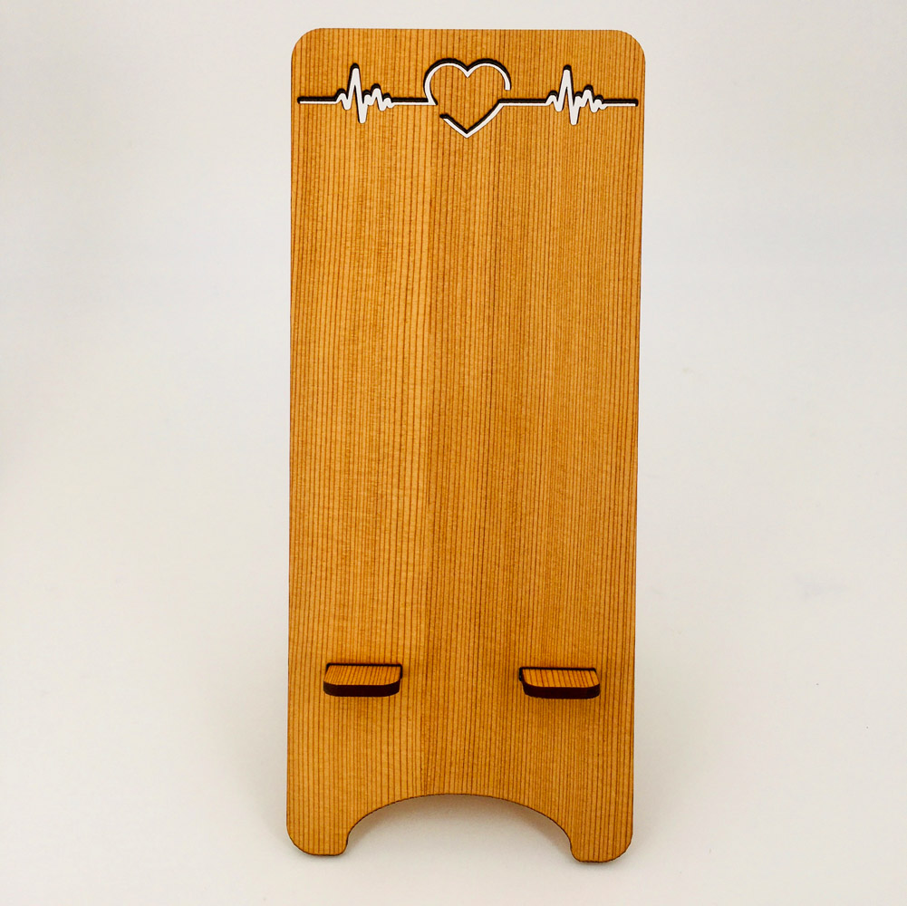 Voici notre support téléphone bois cœur qui fera un super cadeau pour la Saint Valentin ! Une belle idée cadeau également pour toute autre occasion. La découpe de la ligne des battements de cœur ajoute un côté moderne et original à l’objet. C’est un accessoire pratique et stable pour poser son téléphone portable, le laisser se reposer en charge ou pour visionner quelques vidéos.